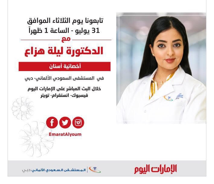 بث مباشر مع أخصائية الأسنان الدكتورة ليلة هزاع من المستشفى السعودي الألماني