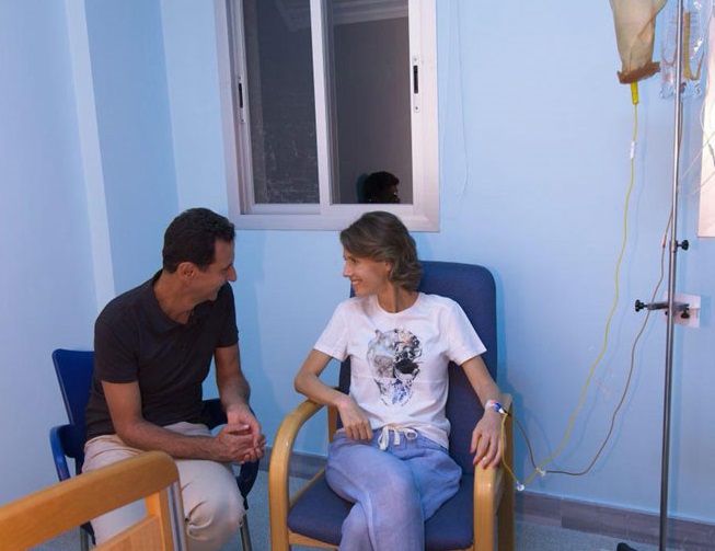وبحسب الصورة التي نشرها المكتب الإعلامي فإن أسماء تتلقى العلاج في أحد المشافي العسكرية بدمشق.