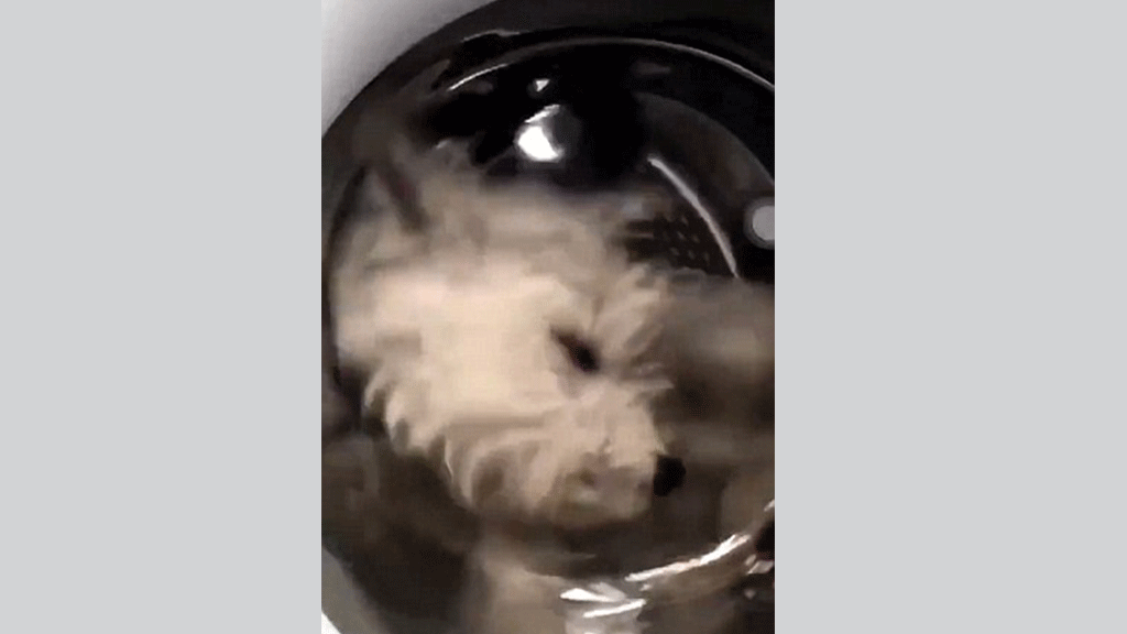 سيدة تصور كلباً داخل غسالة لتسلية متابعيها على انستغرام