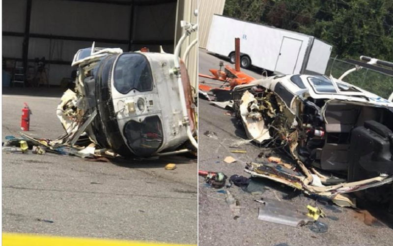 وقالت الشرطة إن الحادث وقع بسبب رياح شديدة مفاجئة، منعت قائد المروحية من السيطرة عليها والإقلاع بها وأخذت تتلاعب بها الى أن ارتطمت بالأرض وتحطمت.