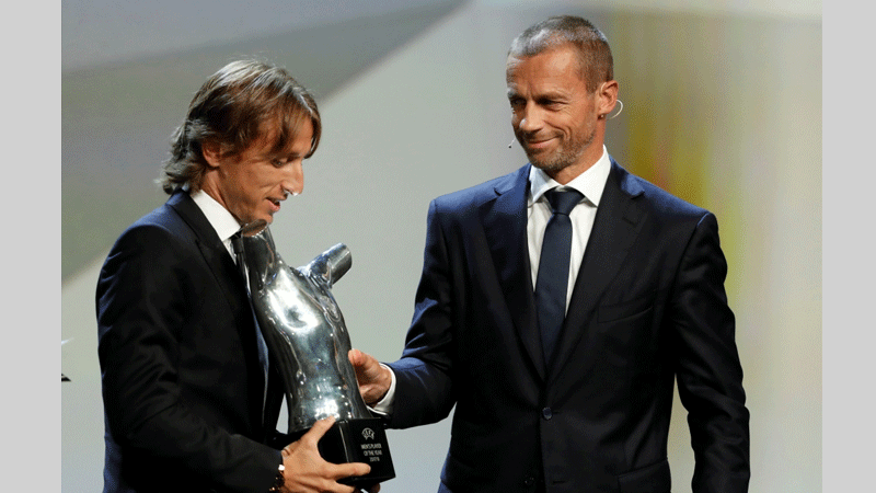 اختار الاتحاد الأوروبي لكرة القدم (ويفا) الكرواتي لوكا مودريتش لاعب خط وسط ريال مدريد الإسباني، كأفضل لاعب في الموسم المنصرم، وذلك خلال احتفال منح جوائزه السنوي الذي أقيم الخميس في موناكو.