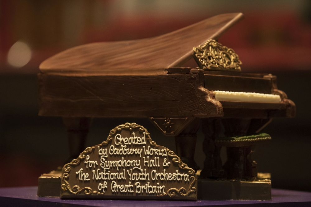 عرضت إحدى الشركات الشهيرة عالمياً، يوم أمس، على خشبة المسرح في قاعة سيمفونية برمنغهام، في بريطانيا، بيانو مصنوع بالكامل من الشوكولاتة يزن 2 كجم، وقد تم تقديمه هدية إلى قاعة السيمفونية وأوركسترا الشباب الوطنية في بريطانيا.