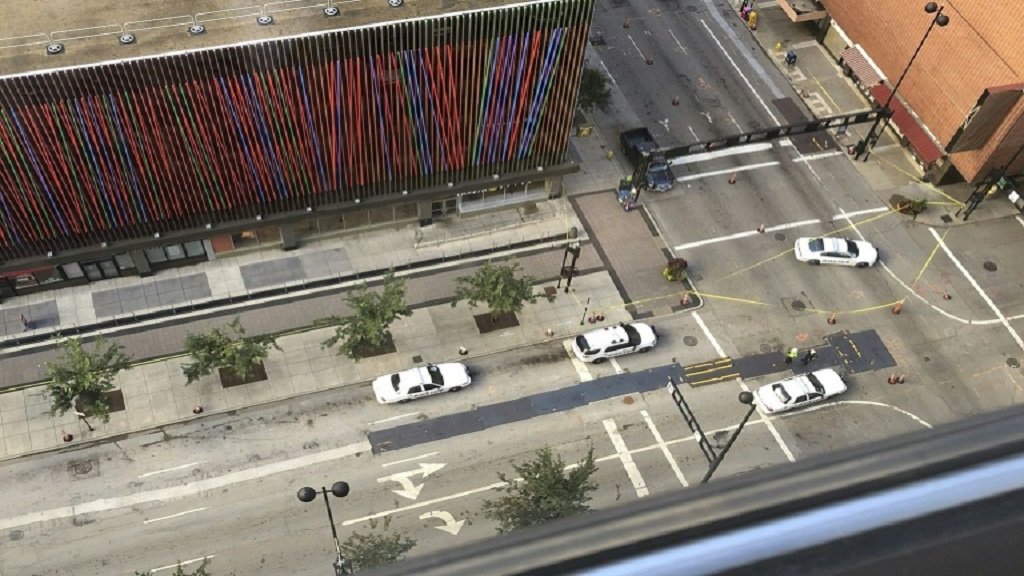 وبدأ اطلاق النار بعيد الساعة التاسعة (13,00 ت غ) اسفل مبنى من ثلاثين طابقا في حي الاعمال في سينسيناتي.