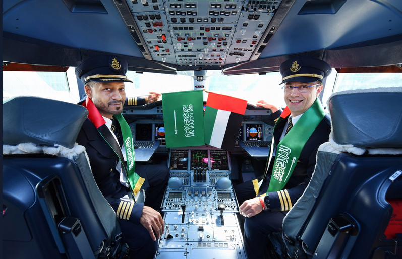 طيران الإمارات تسير الإيرباص A380 إلى الرياض احتفالا باليوم الوطني السعودي