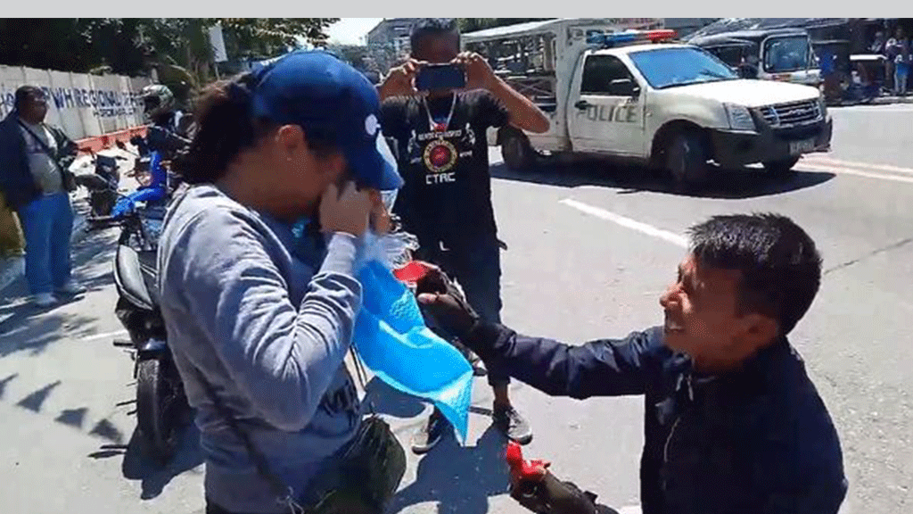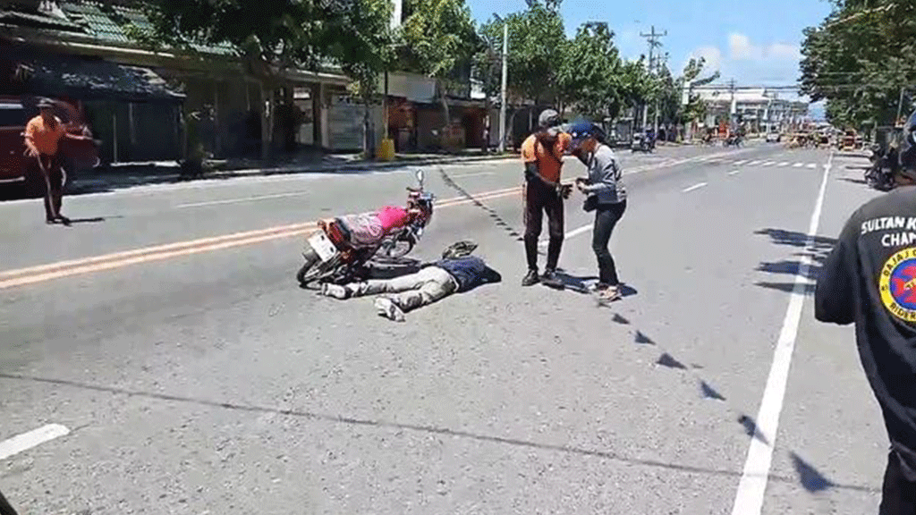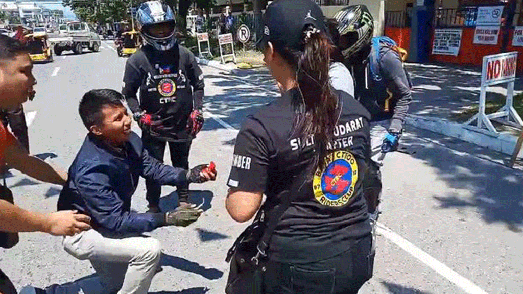 قام سائق دراجة نارية في الفليبين بتزييف وفاته في حادث طريق قبل أن يتقدم لخطبة صديقته التي تعرضت لصدمة عند رؤيتها له مستلق على الأرض والدماء تحيط به.