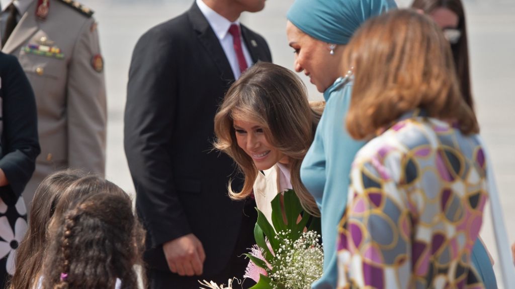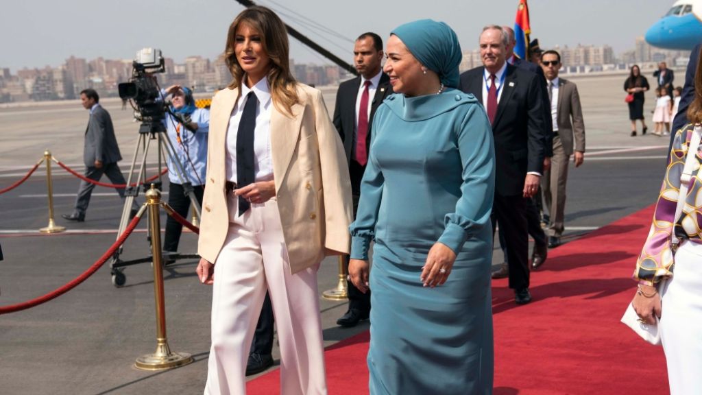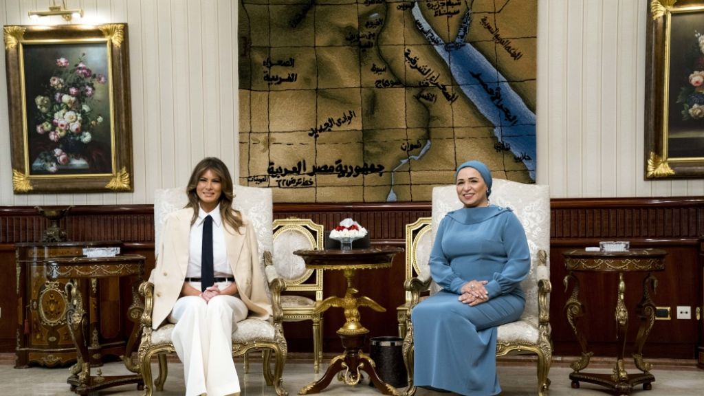 بالصور.. قرينة السيسي تستقبل ميلانيا ترامب