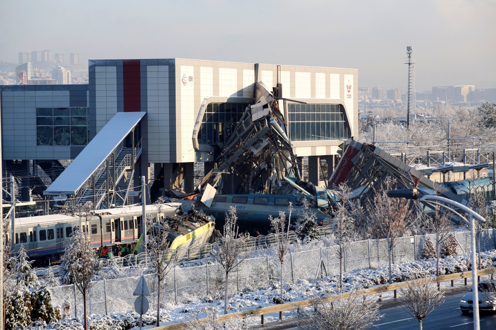 تسبب حادث قطار سريع في العاصمة التركية أنقرة صباح اليوم الخميس، بمقتل ما لا يقل عن 4 أشخاص وإصابة 43 آخرين وفق ما أكده فاسيب شاهين حاكم أنقرة.