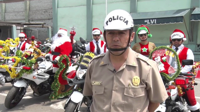 وقال قائد الشرطة الوطنية في بيرو، مارتن أراوجوا: "هذه المبادرة الاحتفالية الجميلة لضباط الشرطة تهدف الى تثقيف الناس حول السلامة المرورية خلال موسم الأعياد".