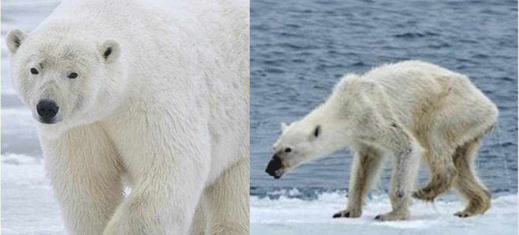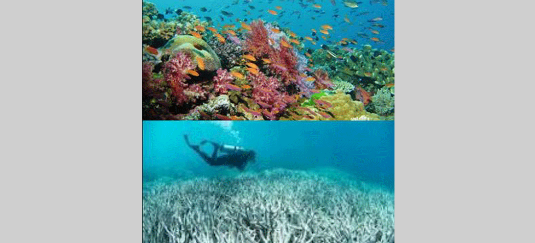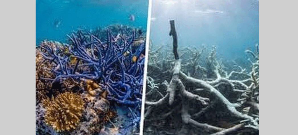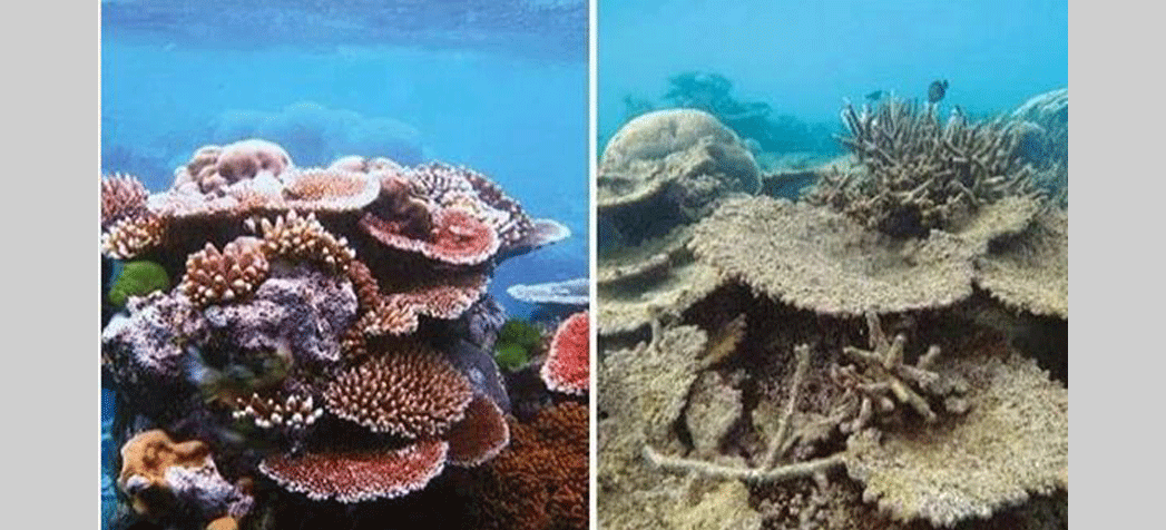 وتظهر الصور انحسار المسطحات المائية، وذوبان مساحات واسعة من الثلوج، وتغير لون الشعاب المرجانية بسبب التلوث.