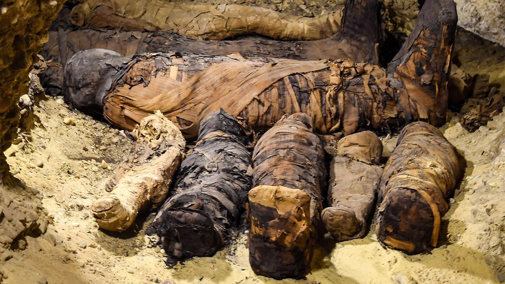 كشفت مصر النقاب، أمس، عن ثلاثة آبار دفن تؤدي كل منها إلى مقابر محفورة في الصخر بها العديد من المومياوات من سلالة البلاطمة من أصل يوناني عمرها أكثر من 2000 عاما، (323 إلى 30 قبل الميلاد)، في الموقع الأثري في تونا الجبل، وسط البلاد.