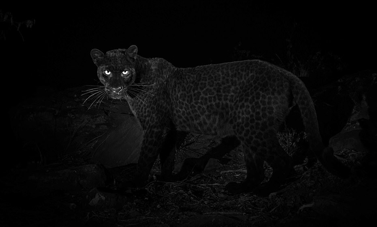 ويحمل الفهد الأسود طفرة جينية تجعل فراءها أسود اللون.
