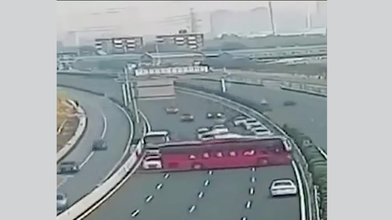 اكتشف سائق باص في الصين أنه لن يتمكن من عبور بوابات السفر على الطريق السريعة وبعد أن أدرك خطأه قرر العودة وعكس خط السير.