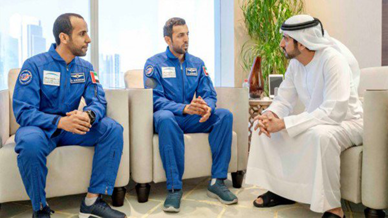 التقى سمو الشيخ حمدان بن محمد بن راشد آل مكتوم ولي عهد دبي رئيس المجلس التنفيذي رئيس مركز محمد بن راشد للفضاء اليوم في مكتب سموه بأبراج الإمارات كلا من هزاع علي المنصوري وسلطان سيف النيادي أول رائدي فضاء إماراتيين ضمن برنامج الإمارات لرواد الفضاء الذي أطلقه صاحب السمو الشيخ محمد بن راشد آل مكتوم نائب رئيس الدولة رئيس مجلس الوزراء حاكم دبي وصاحب السمو الشيخ محمد بن زايد آل نهيان ولي عهد أبوظبي نائب القائد الأعلى للقوات المسلحة في العام 2017 بهدف تدريب وإعداد فريق من رواد الفضاء الإماراتيين ومن ثم إرسالهم للقيام بمهام علمية مختلفة في الفضاء.