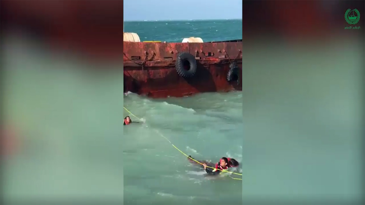 بالفيديو.. شرطة دبي تنقذ 14 بحاراً اصطدمت سفينتهم بكاسر الأمواج