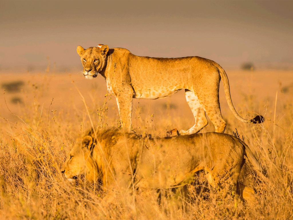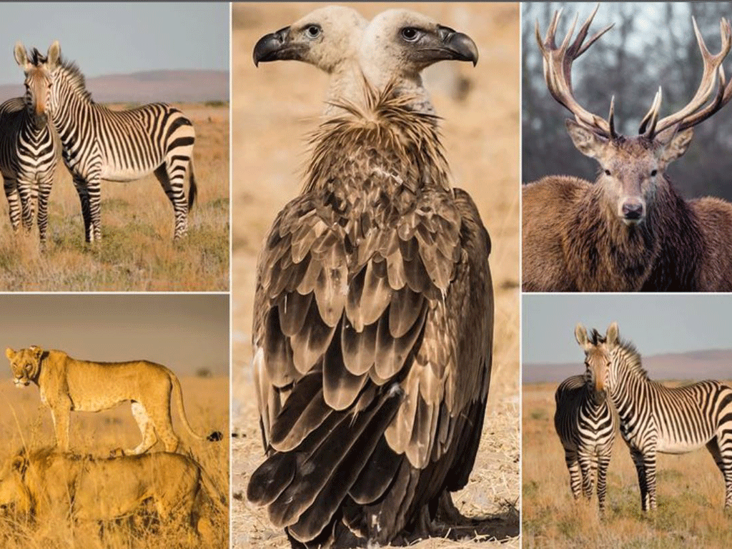 قد تبدو الصور للوهلة الأولى كخدعة بصرية، حيث التقطت بالتوقيت المناسب لتظهر أجسام الحيوانات متداخلة في بعض منها، ومتحدة بجسد واحد في احيان أخرى، ليبدو الحمار الوحشي براس وجسدين، والصقر برأسين في عملية توازن مثيرة للإعجاب يقف خلفها مصور مبدع اختار اللحظة المناسبة لاصطياد الصورة.