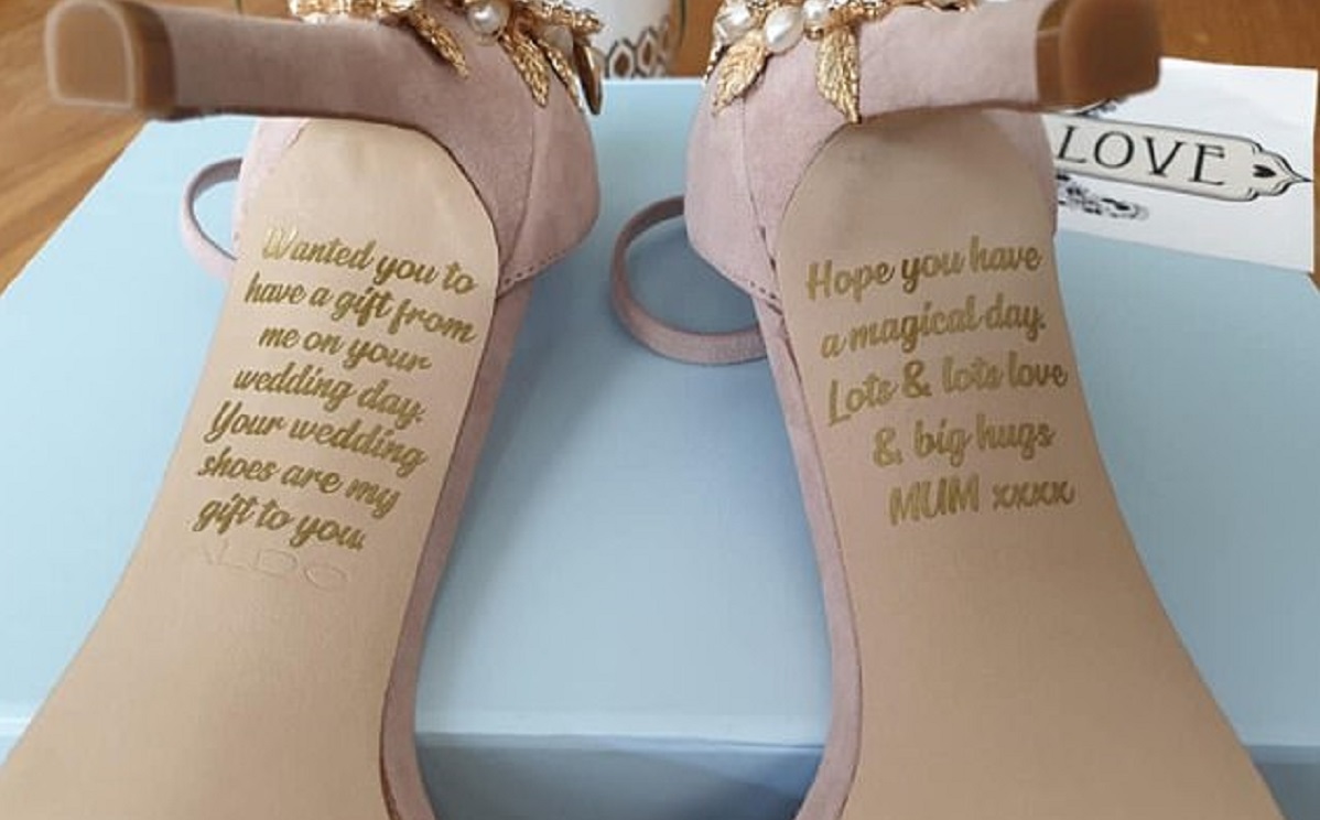 بالصور.. رسالة من أم متوفية على حذاء ابنتها العروس!