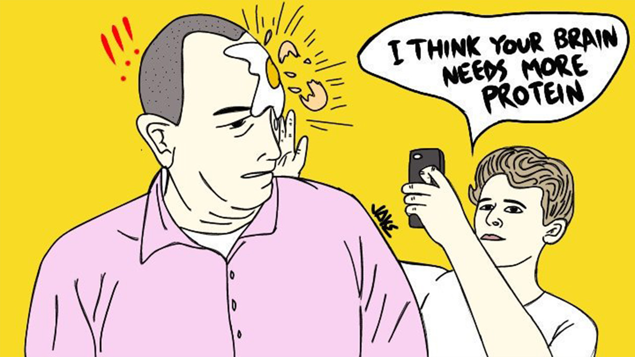 من جانبهم تناقل المئات من رواد مواقع التواصل الاجتماعي صورا كاريكاتورية للفتى وهو يضرب السيناتور بالبيضة مرفقة مع عبارات ساخرة من بينها "بيضة واحدة تكفي".