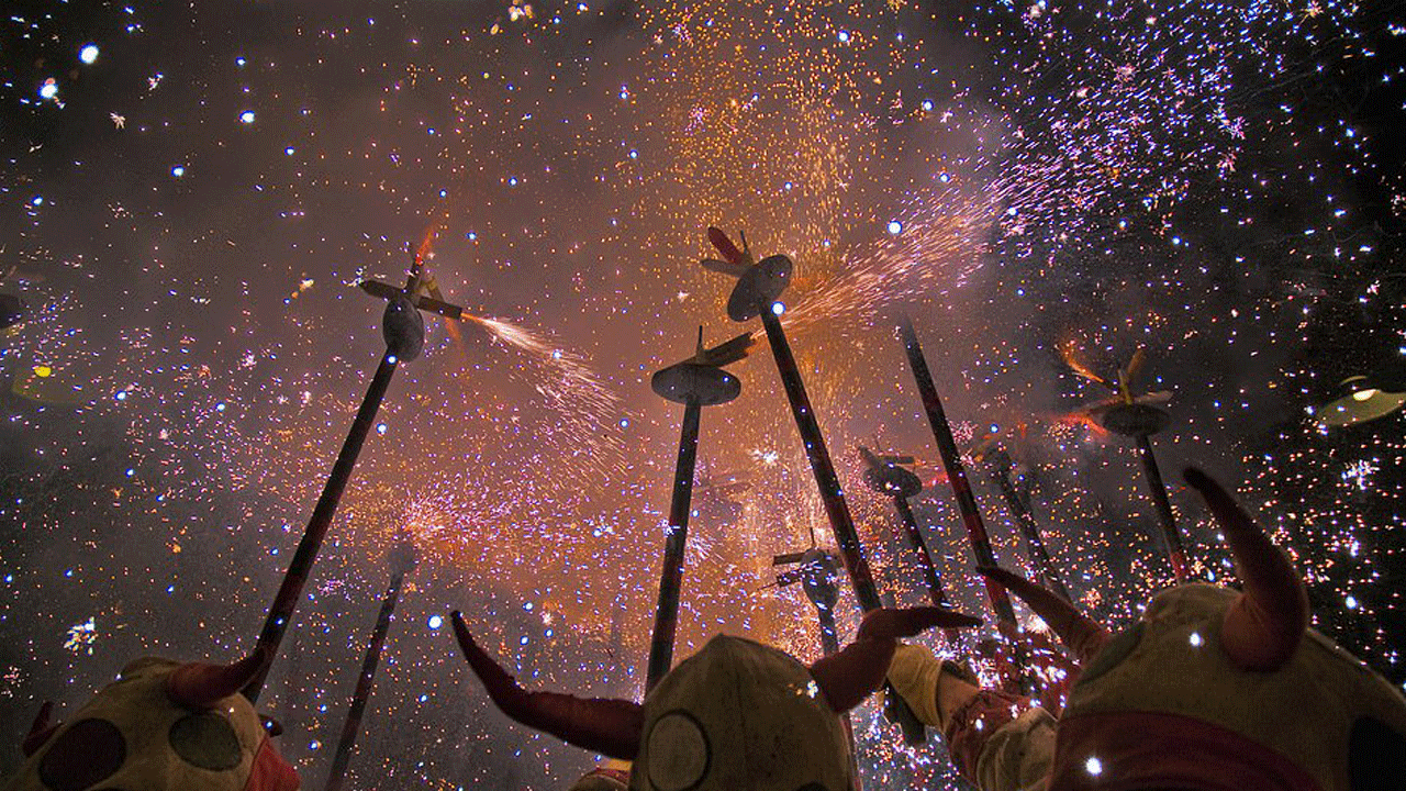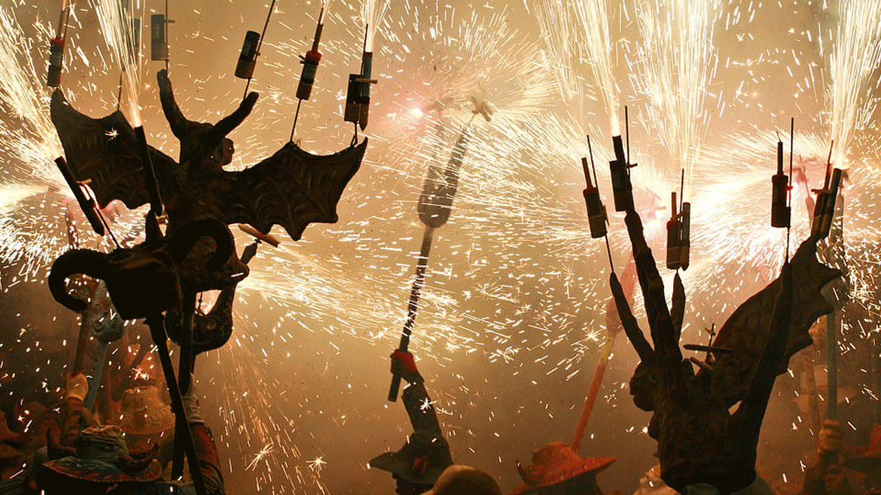 يحتفل المئات في اسبانيا بمهرجان "كوريفوك" أو ما يسمى بمهرجان النيران، حيث يتجمع الناس وسط المدينة مشكلين دائرة كبيرة، فيما يقف مؤدو الاستعراضات في منتصف الدائرة حاملين ألعابا نارية مثبتة على عواميد من الخشب يطلقونها على المتفرجين الذين يرتدون ملاس غير قابلة للإشتعال وقبعات لحماية أنفسهم من الحروق، نتيجة الحمم النارية المتطارية أثناء الركض والرقص.