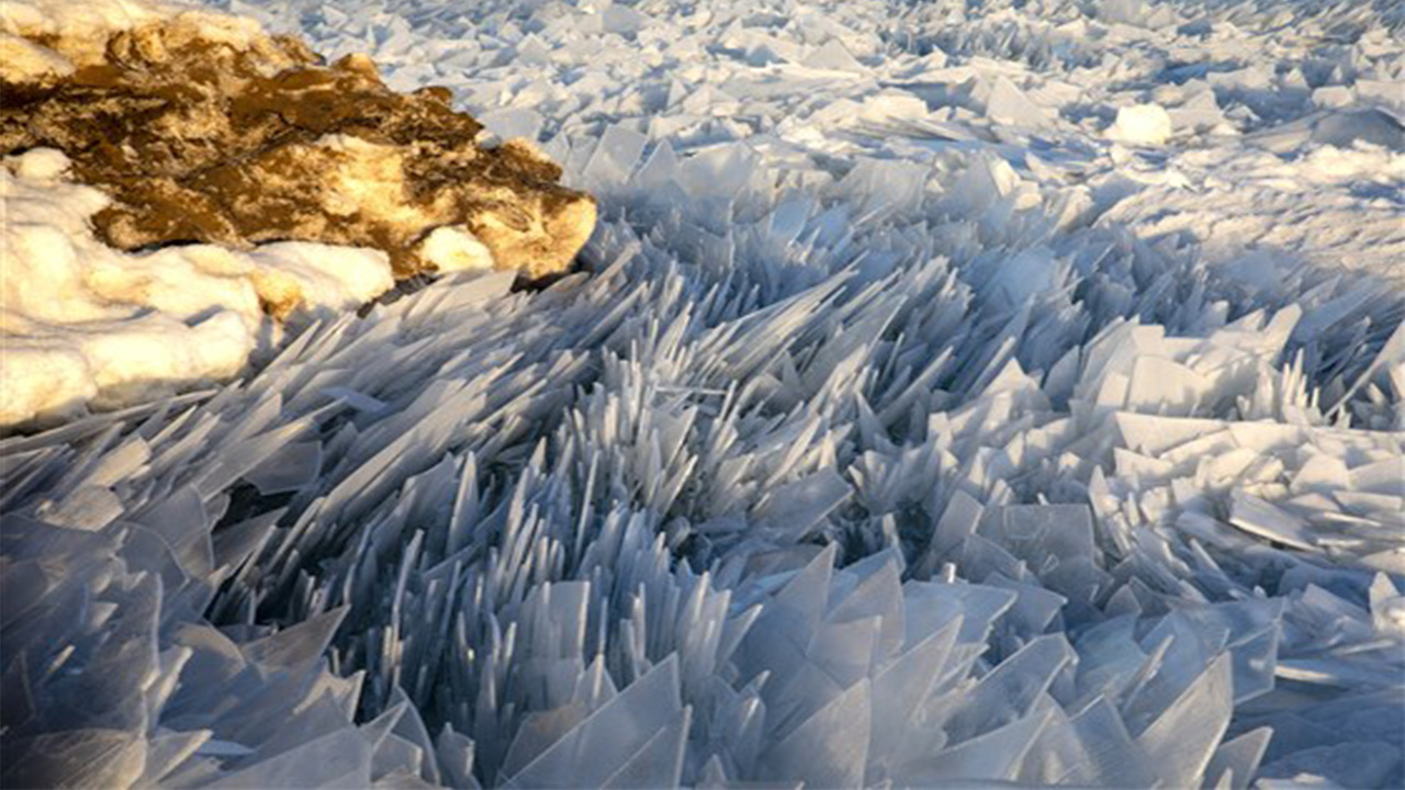 وأدى حلول فصل الربيع وبدء ذوبان بحيرة ميشيغان إلى تكون شظايا الجليد . حيث تدفع موجات الماء السائل أسفل الجليد أجزاء الجليد المكسورة ضد بعضها البعض على طول الساحل. فيتكوّن الجليد بشكل متداخل على بعضه ومتكسر ليشكل أحد أجمل الصور التي قد تراها.