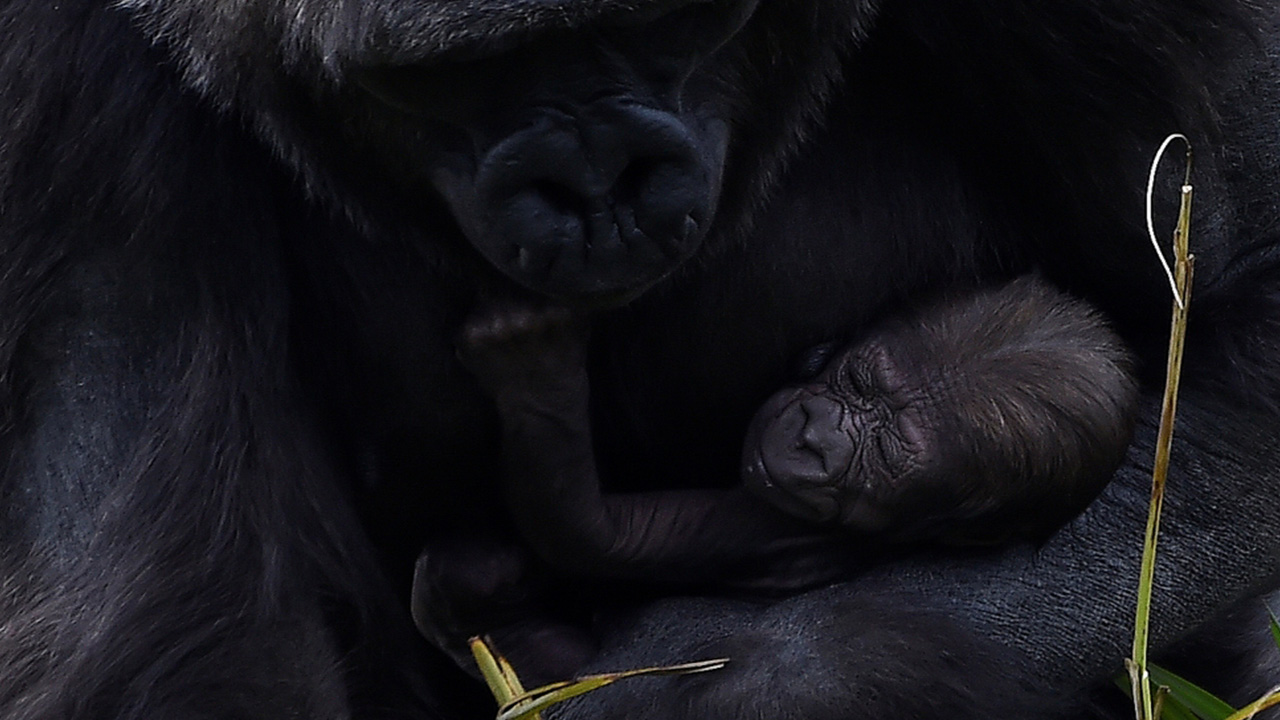 تظهر في الصور غوريلا حديثة الولادة، تبلغ من العمر 10 أيام، وهي متشبثة بأمها في حديقة حيوان دبلن بأيرلاندا.