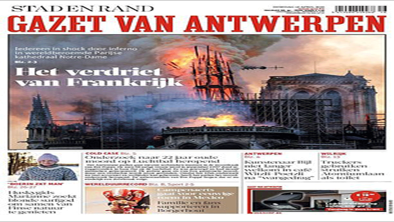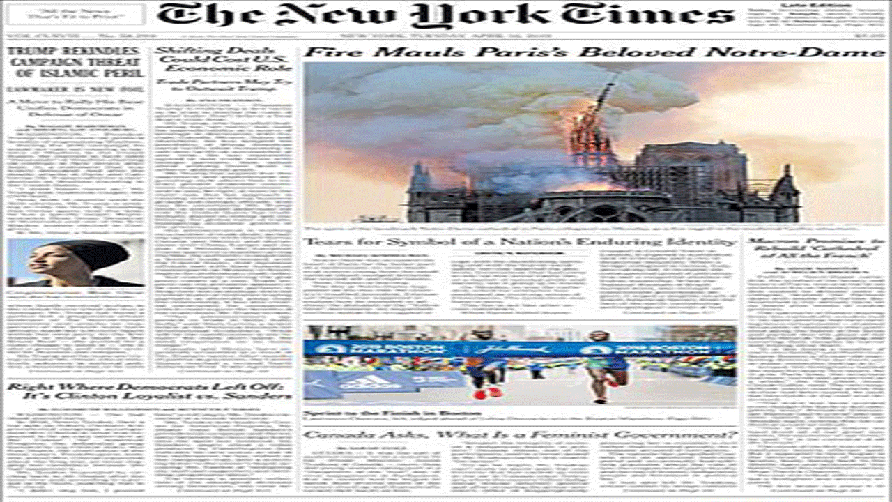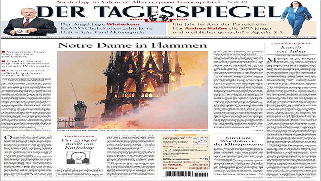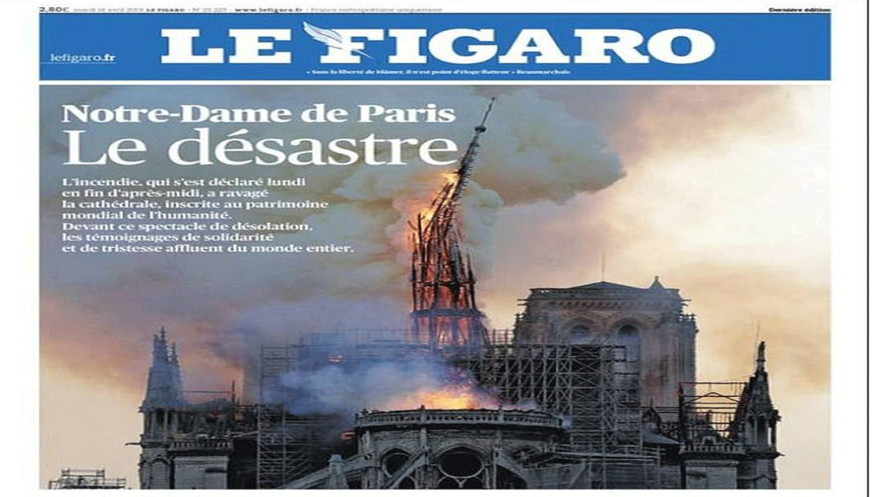 تصدر خبر حريق كاتدرائية نوتردام في باريس الأخبار وحسابات مواقع التواصل الاجتماعي وعناوين الصحف عالميا، في موجة من التعاطف للحادثة التي وصفها كثيرون بالمفجعة.
