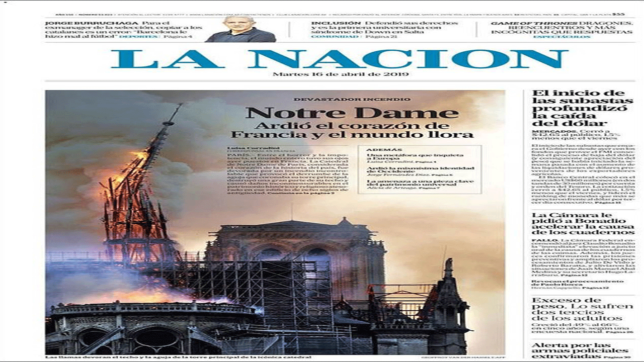 كما تصدر خبر الحريق الصفحة الأولى للصحف في عدة دول منها فرنسا والبرتغال والارجنتين وايطاليا واميركا.. وأجمعت هذه الصحف كلها على وصف ما حدث بالصادم.. المحزن والأليم لدرجة تدمي القلوب.