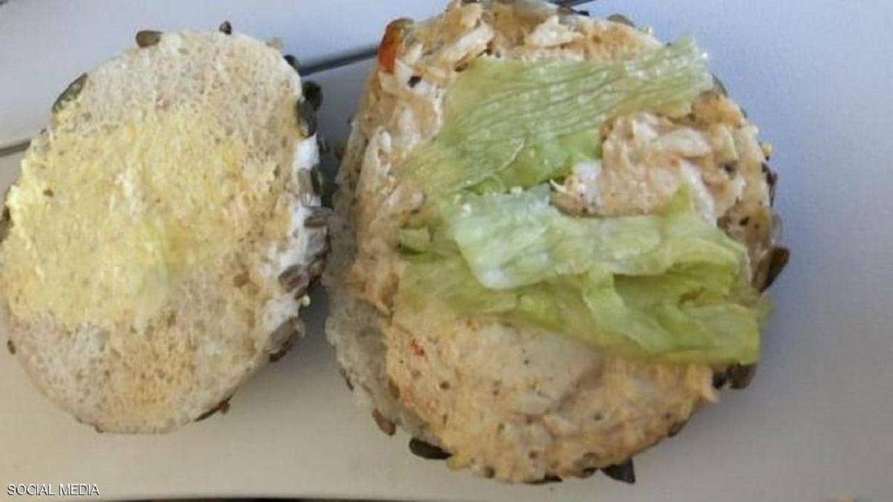 ونقلت صحيفة "ميرور" البريطانية الصورة التي نشرتها المسافرة البريطانية وتظهر السندويش الفضيحة الذي لم يضم أي شيء تقريبا، باستثناء الخبز وقطعة من الزبدة والخس..