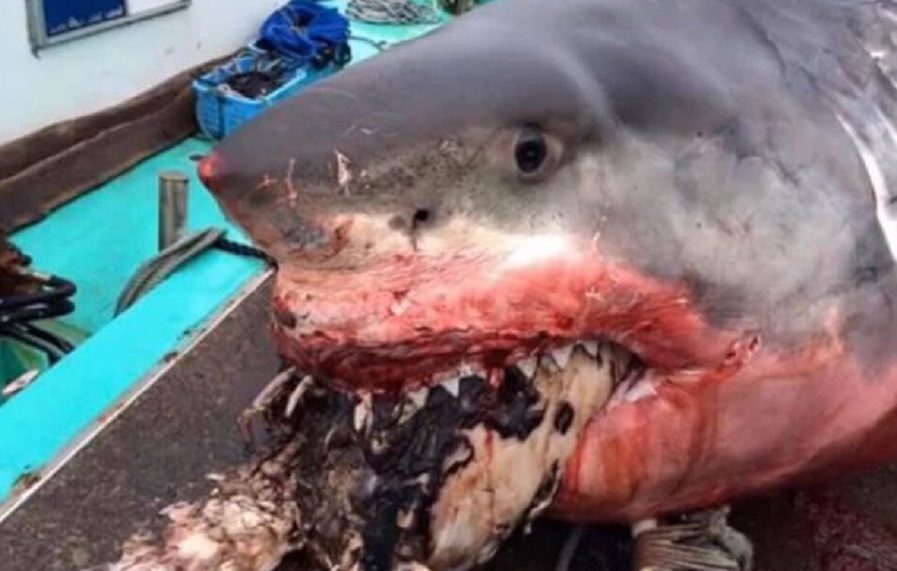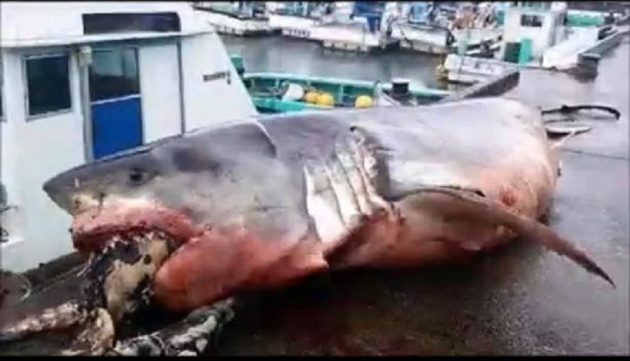 نشر صياد عبر حسابه على موقع التواصل الإجتماعي "فيس بوك"، صورة التقطها بنفسه أثناء صيده الأسماك في اليابان، تظهر سمكة قرش بيضاء كبيرة تشبه "الوحش" عالقة في شبكته، حيث كانت ميتة من الاختناق.