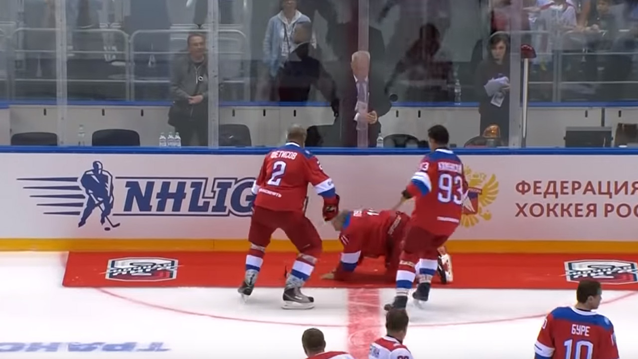 أظهر مقطع فيديو نشره موقع صحيفة "جارديان" البريطانية لحظة سقوط الرئيس الروسي فلاديمير بوتين على الجليد بعد مباراة للهوكي شارك بها، في الأول من أمس، والتي سجل خلالها العديد من الأهداف.