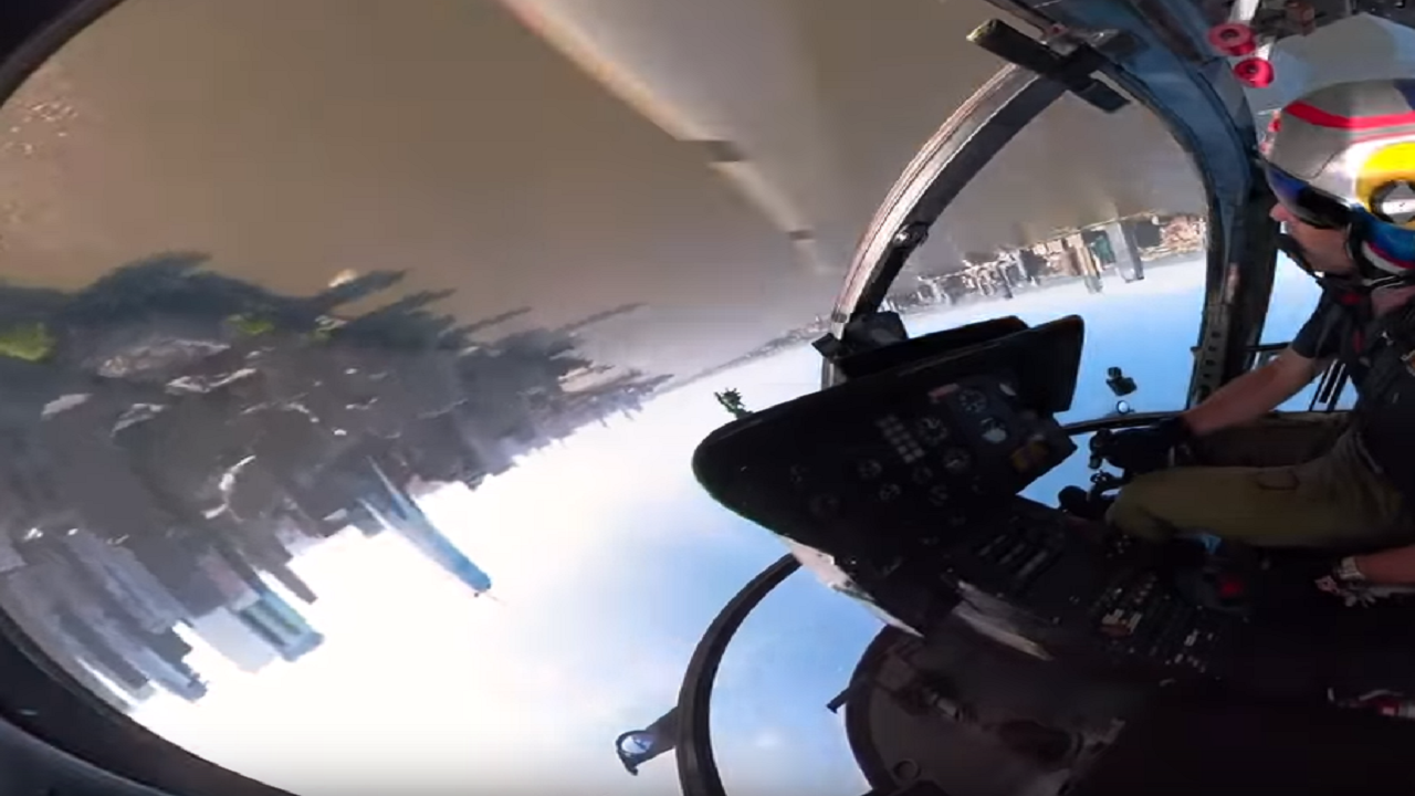 قدمت مروحية عرضا فنيا مدهشا فوق مدينة مانهاتن في نيويورك بمناسبة يوم الذكرى في الولايات المتحدة الأمريكية، حيث نفذ الطيار البهلواني آرون فيتزجيرالد حركات تبدو مستحيلة لكل من شاهدها.
