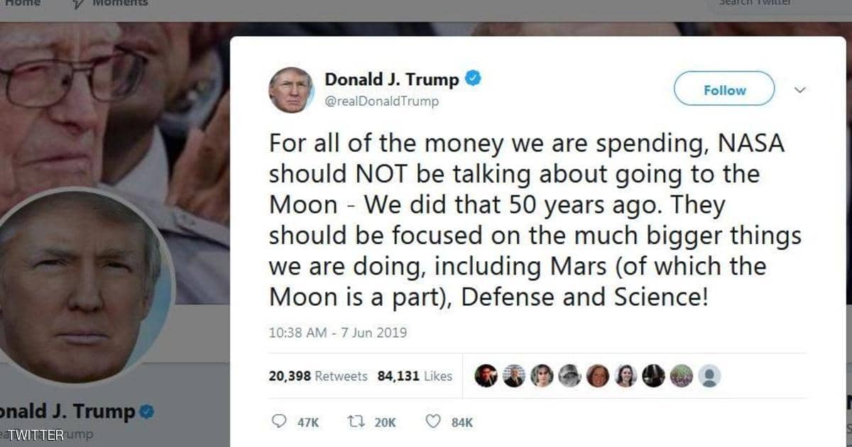 وأضاف ترامب "عليهم أن يركزوا على شيء أكبر بكثير لنقوم به، بما في ذلك المريخ الذي يشكل القمر جزءا منه، وعلى الدفاع والعلوم"، بحسب ما ذكرت صحيفة الغارديان البريطانية.