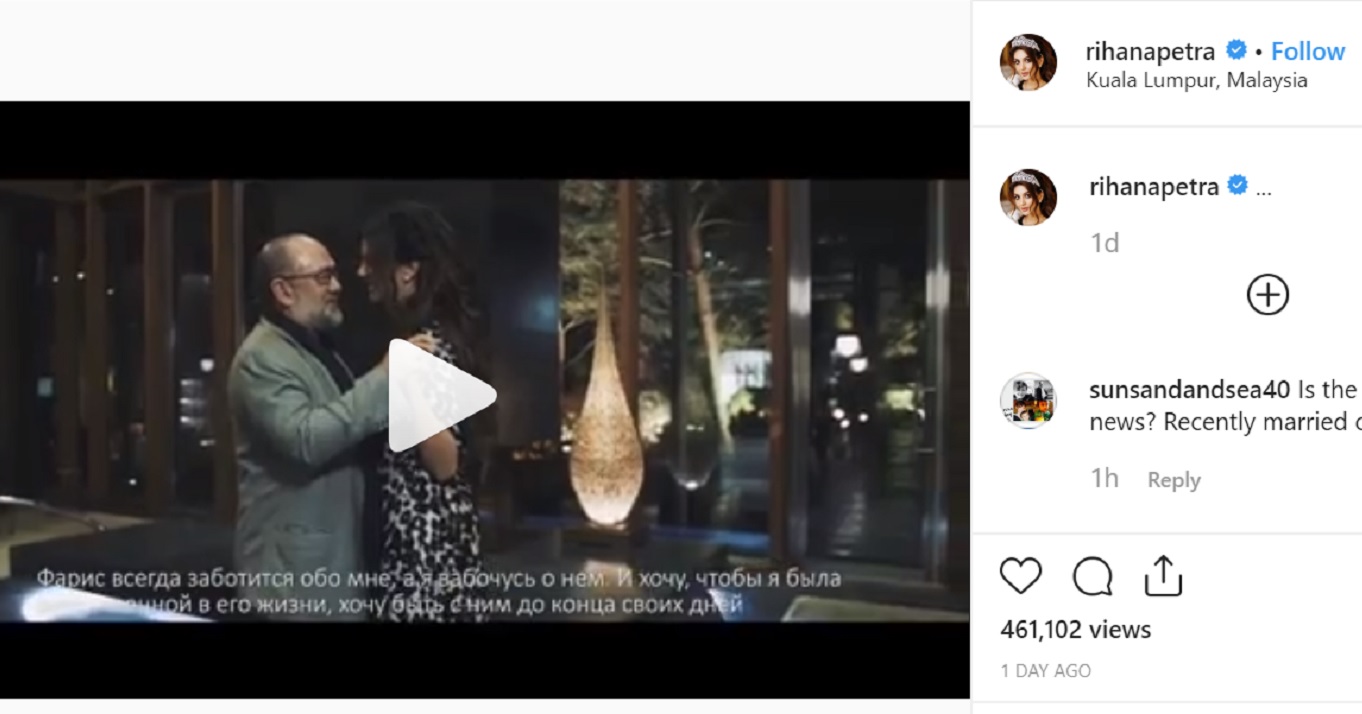 نشرت ملكة جمال روسيا السابقة، ريانا أوكسانا فويفودينا، مقطع فيديو تؤكد فيه مشاعر حبها لملك ماليزيا السابق، سلطان محمد الخامس.