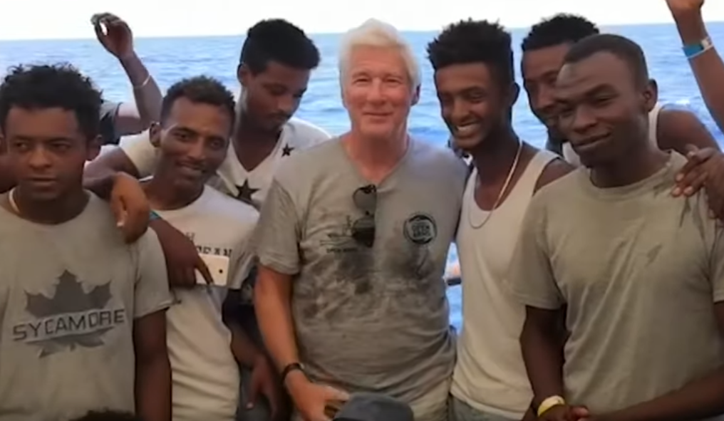 بالفيديو.. "ريتشارد غير" يزور مهاجرين عالقين في مياه المتوسط تأييدا لقضيتهم