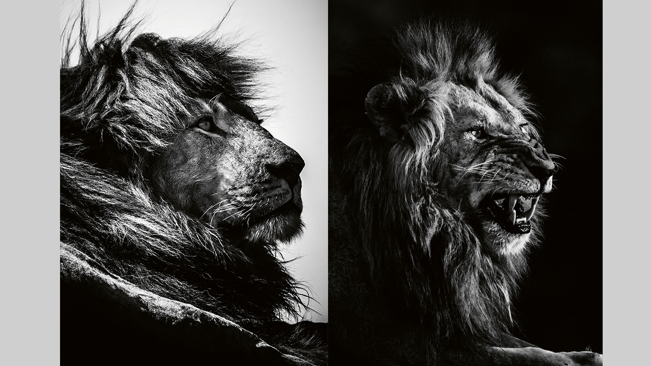 فخامة الأسد بالأبيض والأسود