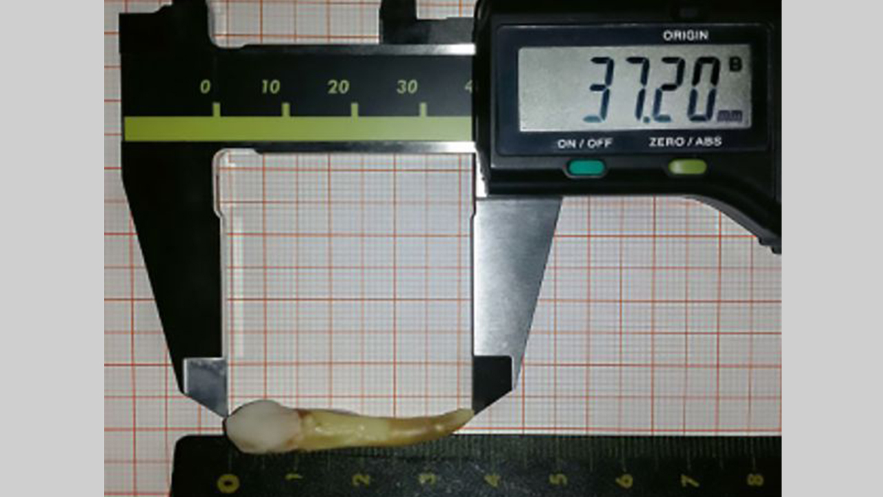 وأصيب طبيبه بالصدمة من طول السن، ووصف سنه بأنه "غير معقول" بعد أن كشفت الأشعة السينية عن طوله المدهش.