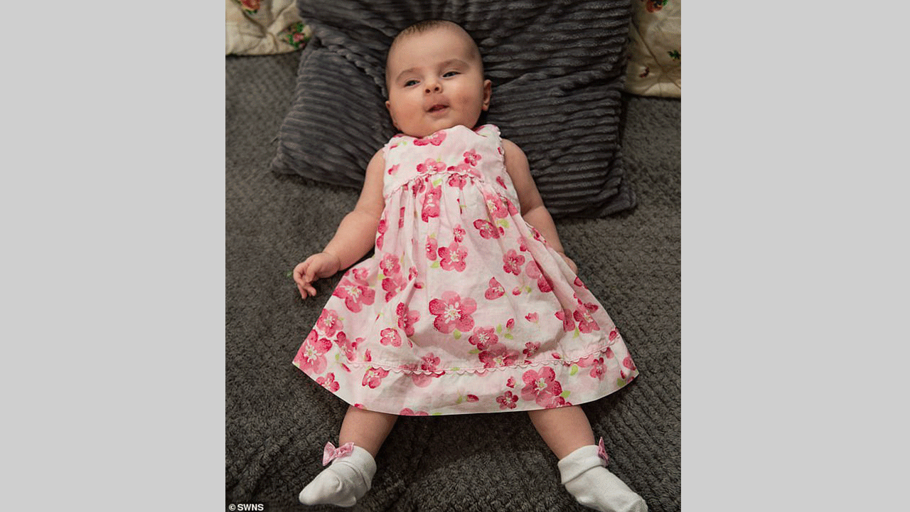 ورصد الأطباء لدى الطفلة ميا التي تبلغ الآن خمسة أشهر، عظمة فخذ مكسورة أثناء وجودها في الرحم، الأمر الذي رجح إصابتها بهشاشة العظام.