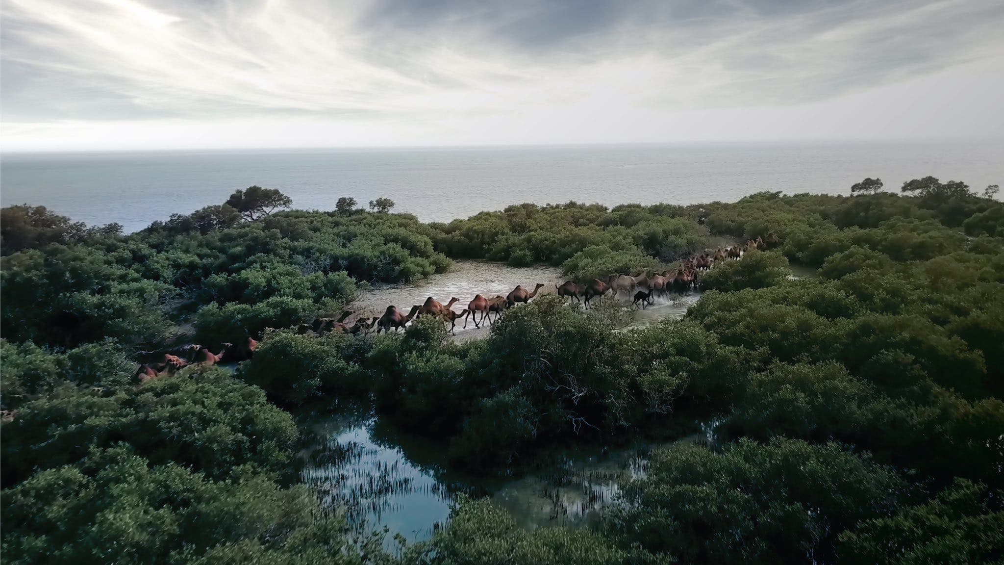 واستخدم الفريق طائرات الدرونز لتوثيق انتقال الإبل في إحدى الجزر، والتي تغلب عليها الصخور البركانية السوداء (الحرات)، في حين علق وزير الثقافة السعودي، الأمير بدر بن فرحان آل سعود، على هذا الفيديو قائلاً: «من بلادي إبل وبحر».