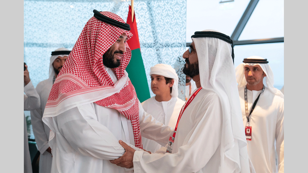 شهد صاحب السمو الشيخ محمد بن راشد آل مكتوم نائب رئيس الدولة رئيس مجلس الوزراء حاكم دبي وصاحب السمو الشيخ محمد بن زايد آل نهيان ولي عهد أبوظبي نائب القائد الأعلى للقوات المسلحة وصاحب السمو الملكي الأمير محمد بن سلمان آل سعود ولي العهد نائب رئيس مجلس الوزراء وزير دفاع المملكة العربية السعودية .. منافسات " جائزة الاتحاد للطيران الكبرى للفورمولا 1 - الجولة الختامية لبطولة العالم في موسم 2019 " التي أقيمت على حلبة مرسى ياس في العاصمة أبوظبي .. وذلك بحضور رؤساء الوفود من الدول الشقيقة والصديقة ضيوف الدولة وسمو أولياء العهود ونواب الحكام والشيوخ.