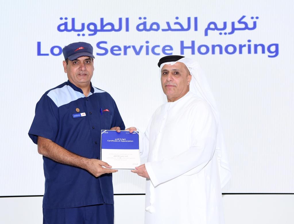 كرم سعادة مطر الطاير المدير العام ورئيس مجلس المديرين في هيئة الطرق والمواصلات، موظفي الخدمة الطويلة الذين أمضوا سنوات طويلة في خدمة حكومة دبي، وذلك تقديرا لجهودهم وعطائهم في خدمة الوطن طيلة السنوات الماضية.