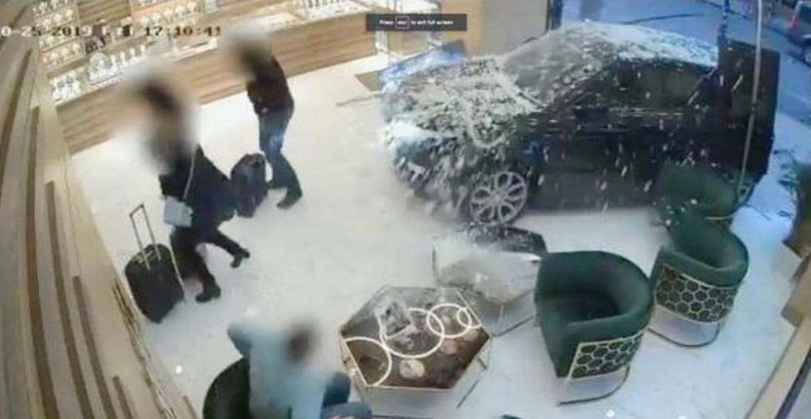 واقتحم 3 لصوص واجهة المتجر بواسطة سيارة وسرقوا مجوهرات بآلاف الجنيهات الإسترلينية، قبل أن ينجح مارة في مطاردتهم وإيقاف أحدهم.