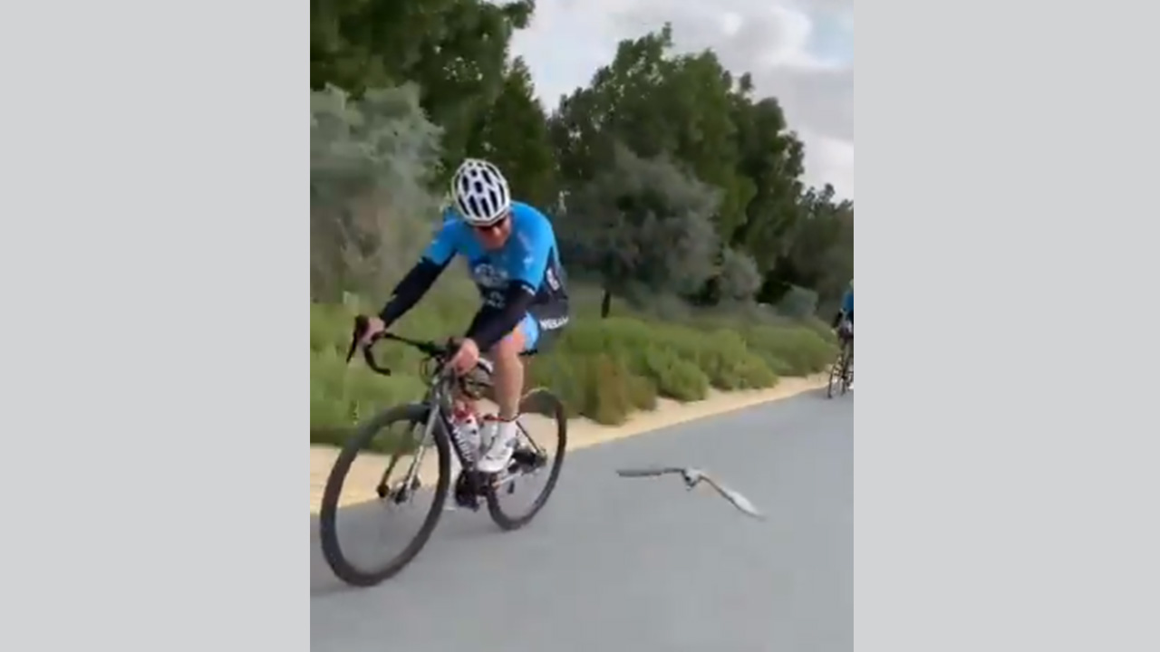 بالفيديو.. طائر يشارك الدراجين في طواف الإمارات