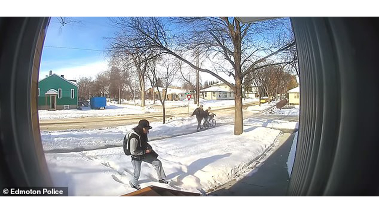 التقطت كاميرا مثبتة على الباب الرئيسي لأحد المنازل لحظة غلقاء الشرطة القبض على امراة قامت بسرقة أحد الطرود من شرفة المنزل نفسه في إدمونتون، عاصمة مقاطعة ألبرتا بكندا، وفقا لما جاء في موقع "ديلي ميل" البريطاني.
