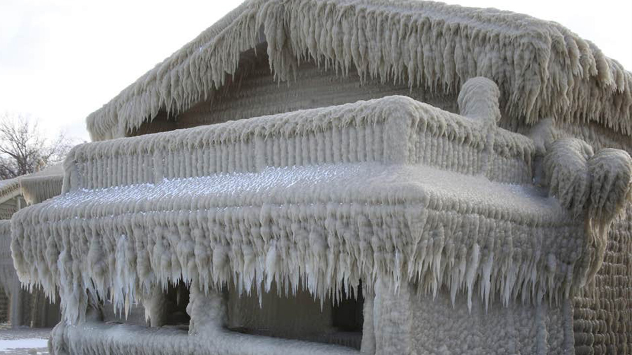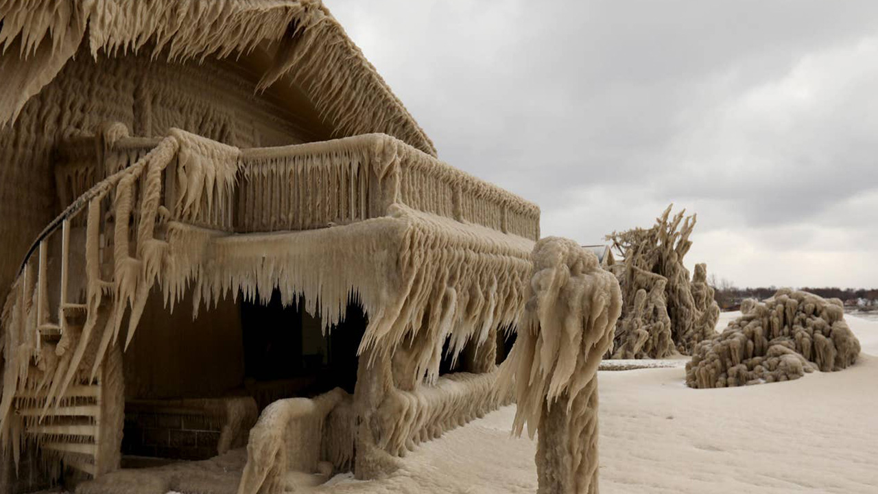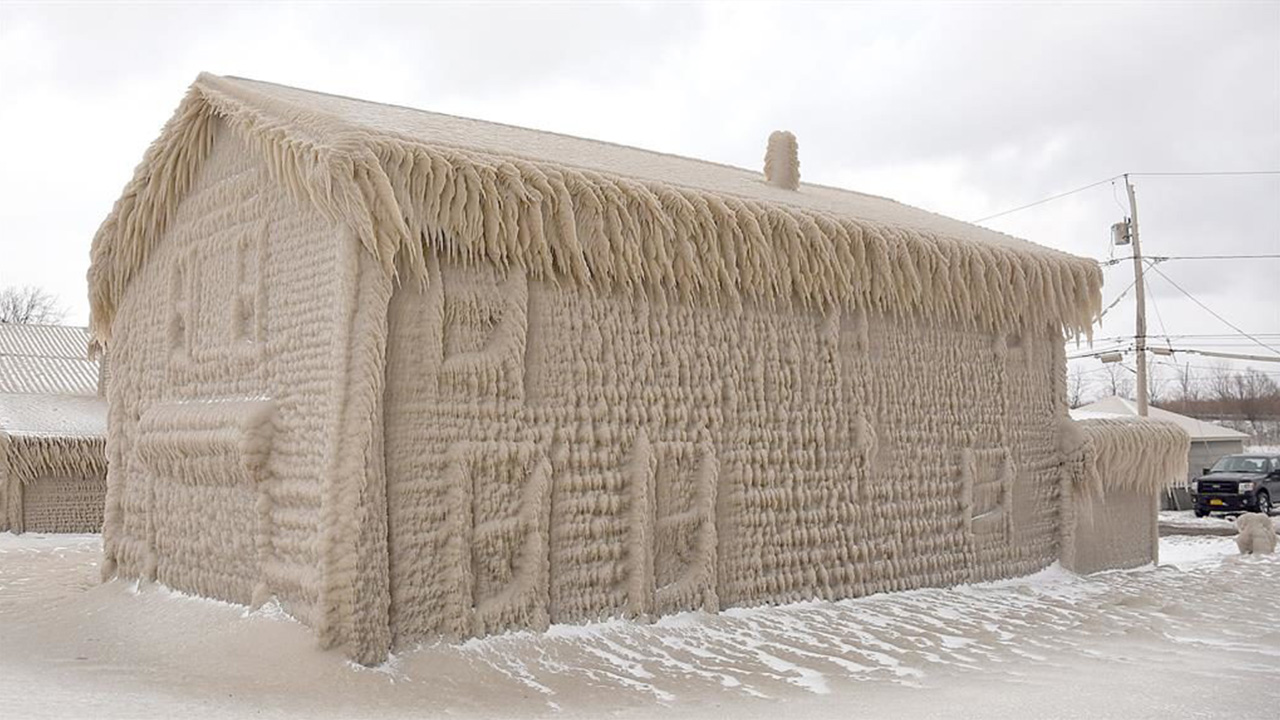 أدت عاصفة ثلجية ضربت مناطق شرقي أميركا على مدى يومين إلى تراكم الثلوج على المنازل المطلة على بحيرة إيري في نيويورك. فبدا شكلها كالأكواخ المتجمدة.