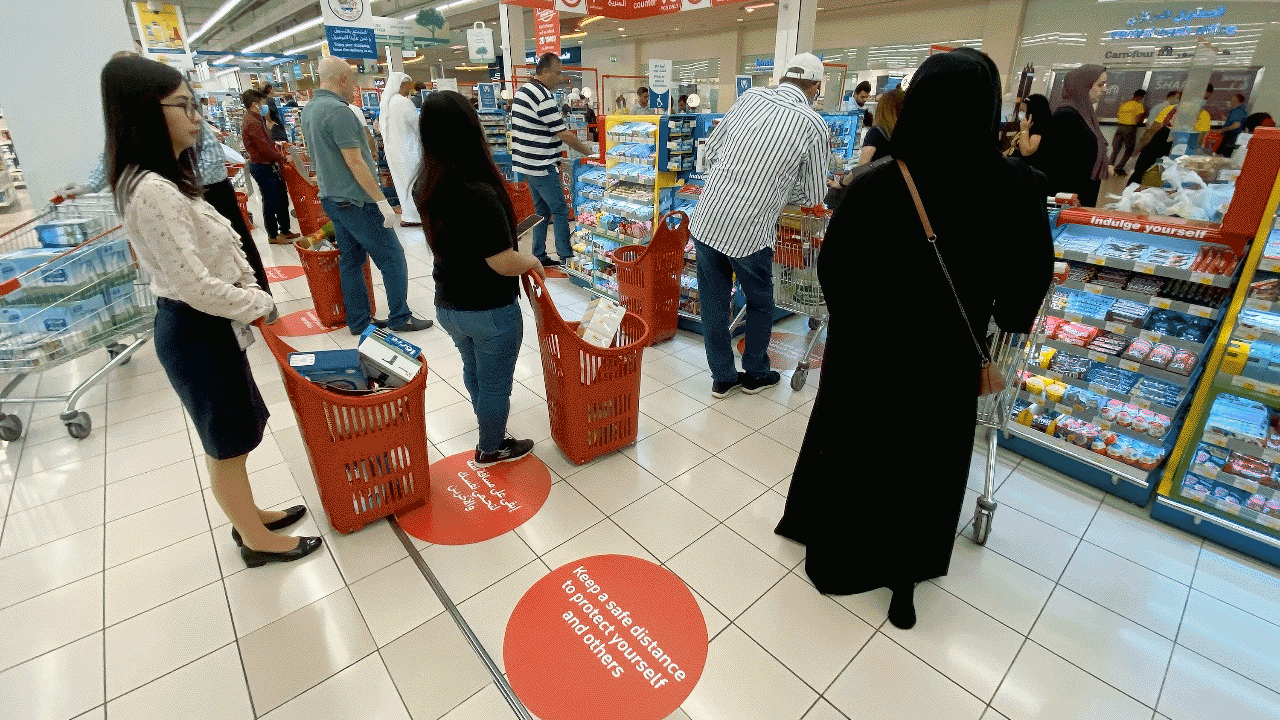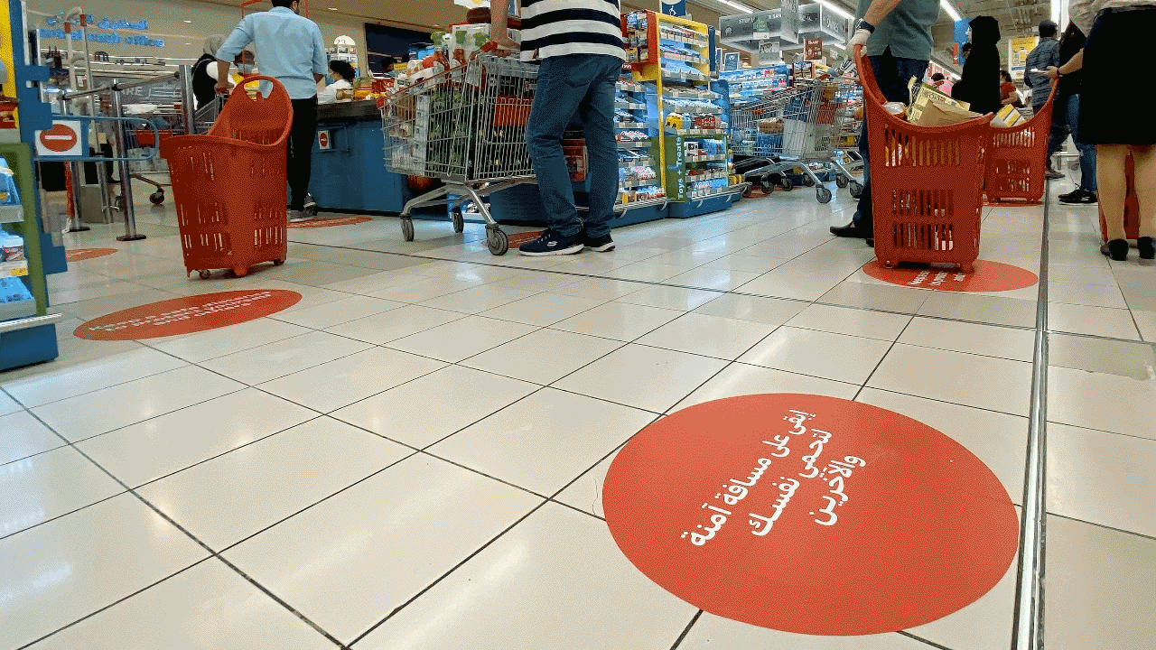 أعرب متسوقون عن ارتياحهم لوضع منافذ تسوق عدة في الدولة مسافات أمان تمنع مرتادي مراكز التسوق، بغرض التبضع، وشراء الاحتياجات الغذائية الضرورية، من الاقتراب جسدياً، وبالتالي حمايتهم من انتقال فيروس كورونا إليهم من أي مصاب محتمل بالمرض.