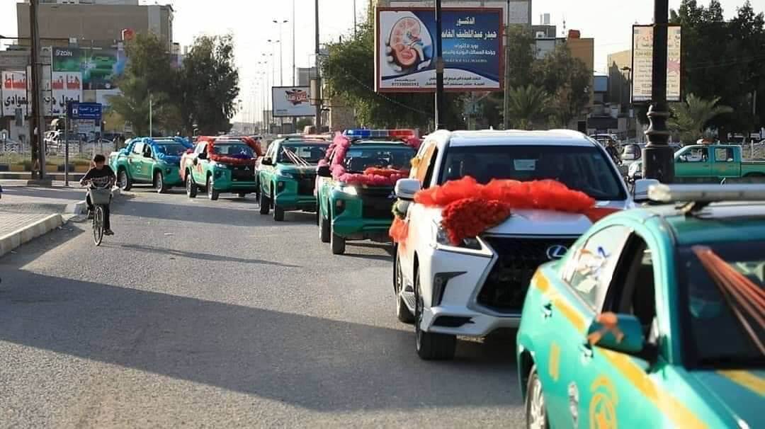 وتداول رواد مواقع التواصل الاجتماعي صورا وفيديوهات تظهر سيارات قوات النجدة وهي تشارك في زفاف العريسين.