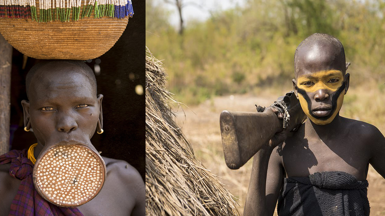 نساء قبيلة "مورسي" البدائية.. زينتهن بنادق كلاشينكوف وحلي الفم أقراص من معدن وطين