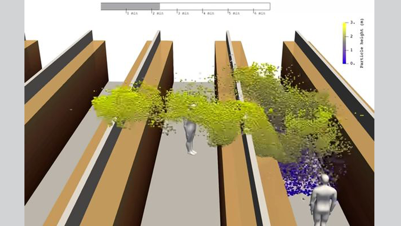 وقام الفريق بوضع نموذج لسعال شخص في ممر سوبر ماركت، وبشكل مثير للدهشة، وجدوا أن الجسيمات تنتشر حول السوبر ماركت بسرعة كبيرة.