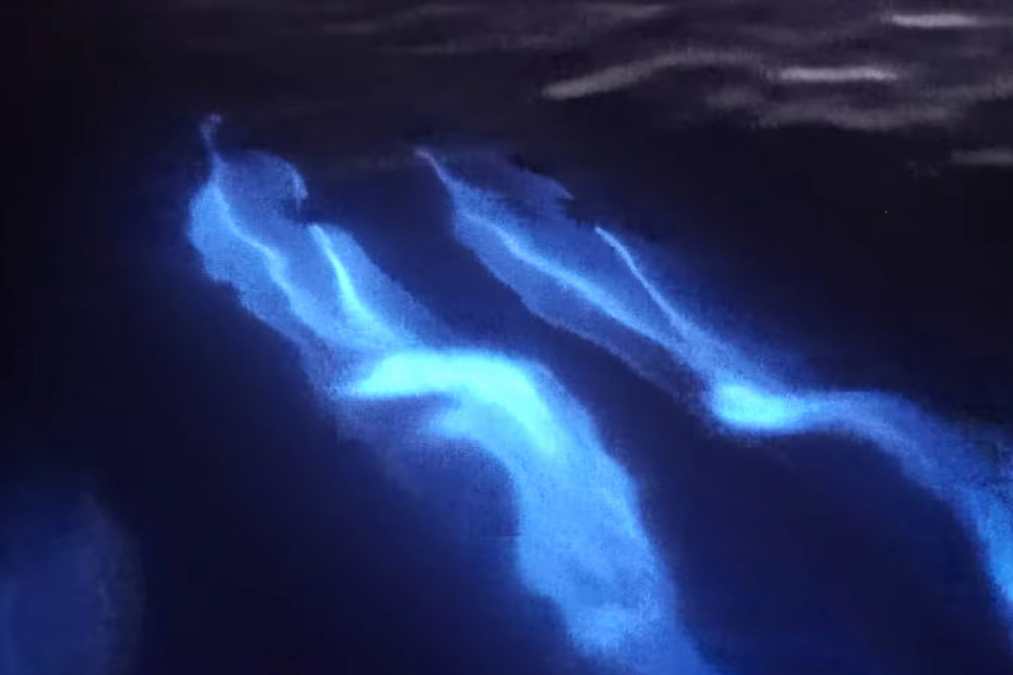 ونجم العرض الضوئي عن قيام الدلافين بإزعاج الكائنات الدقيقة، التي تتوهج بشكل من أشكال الاستجابة للخوف.