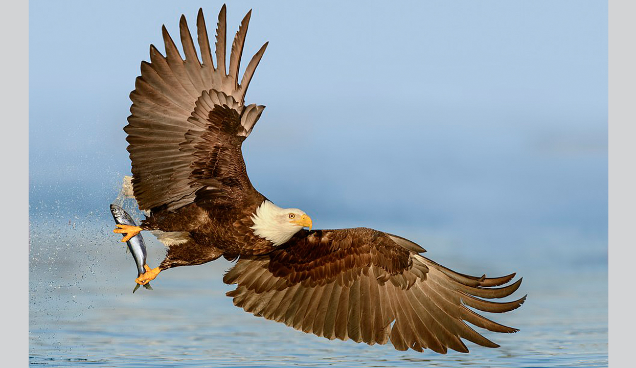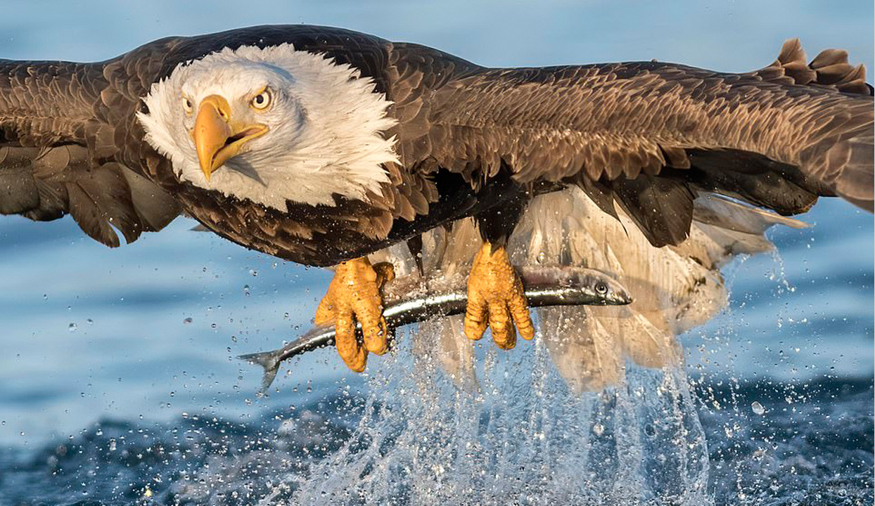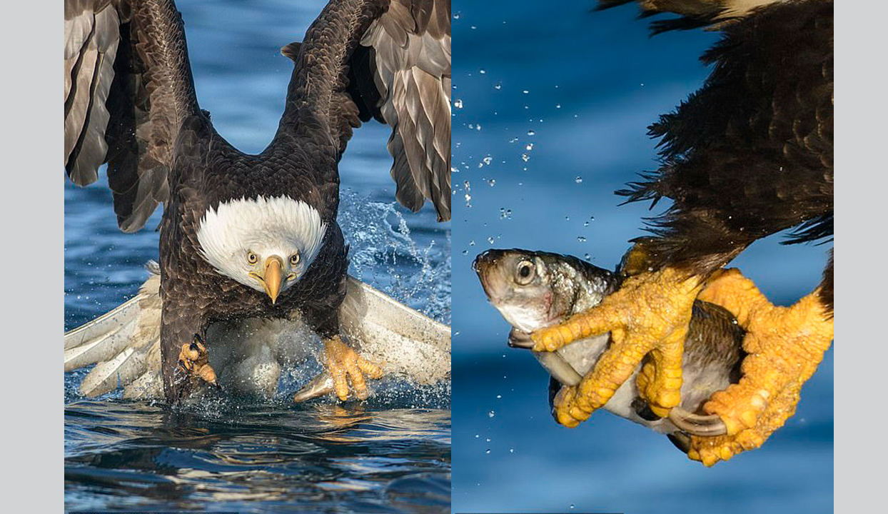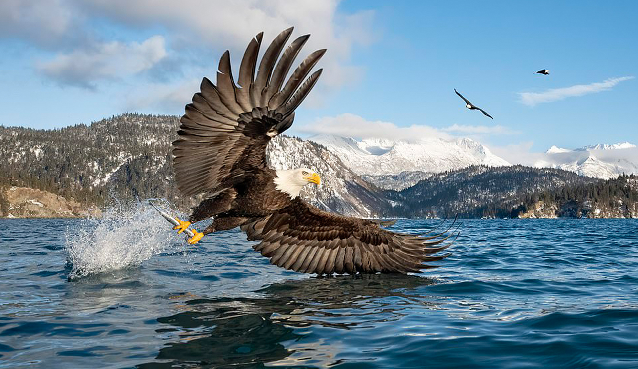 التقط المصور الفوتوغرافي 58 آلان مورفي صورا لنسر لحظة انقضاضه على فريسته في آلاسكا.