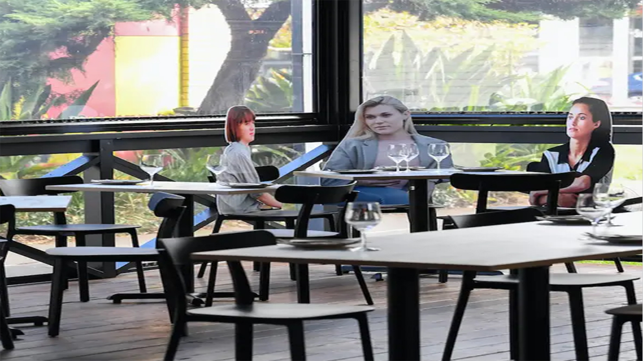 لجأمطاعم في مدينة سيدني الاسترالية إلى ملئ طاولاته الفارغة بمجسمات، مصنوعة من الورق المقوى، عليها صور أشخاص.